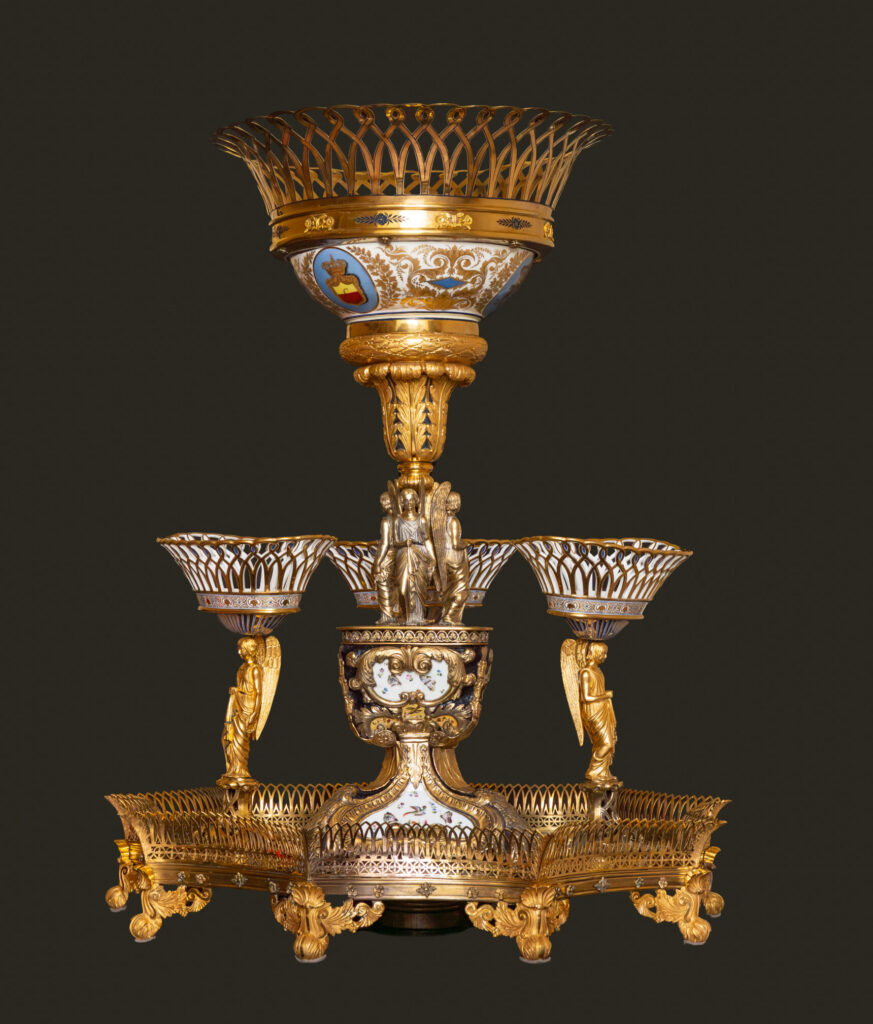 Centrotavola del Sebeto con vedute dei Palazzi Reali di Napoli, Capodimonte e Caserta di Raffaele Giovine