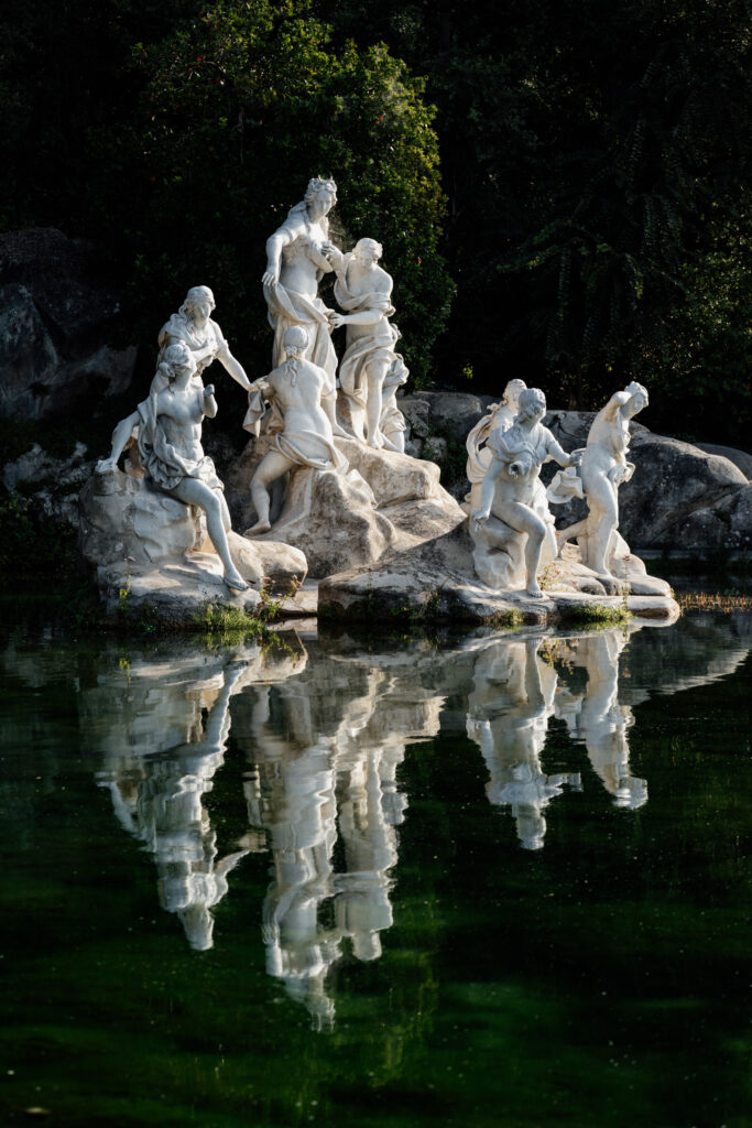 La Sala “Romanelli” prende il nome dal pittore a cui sono attribuiti i dipinti alle pareti ed è la prima grande sala dell’Appartamento della Regina, così come era previsto nel progetto dell’architetto Luigi Vanvitelli, l’ala nord ovest del Palazzo che si affaccia sul parco reale. Il piano nobile, destinato all’alloggio della famiglia reale, era stato suddiviso dal Vanvitelli in quattro parti e tutti gli ambienti in questo “quarto” del palazzo non sono stati mai decorati e neanche vissuti dai sovrani. Dopo il secondo conflitto mondiale, tali ambienti sono stati dati in consegna alla Presidenza del Consiglio dei Ministri restituiti all’area museale nel 2014. Alle pareti sono esposti dipinti appartenenti alla Collezione Farnese, importante collezione donata al re Carlo di Borbone dalla madre Elisabetta Farnese. Nel corso dell’Ottocento i dipinti erano esposti nel Real Museo Borbonico e solo dal 1963 negli ambienti attuali.